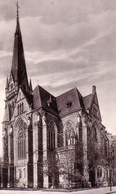 Am 10. Juli 1896 wurde gegenüber dem heutigen Haydnplatz der Grundstein für die neue Deutsch-reformierte Kirche gelegt. Zuvor hatte die Gemeinde zunächst die Gangolfi-Kapelle am Domplatz und von 1700 bis 1895 die danach abgerissene Paulinerkapelle am Breiten Weg genutzt.