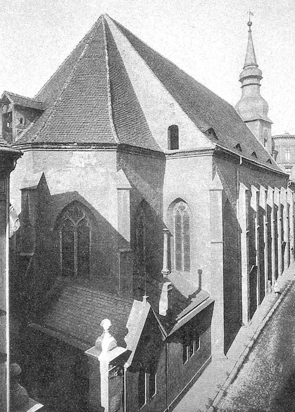 Die Pfarrkirche Heilig-Geist entstand als Hospitalkirche des 1214 gegründeten Heilig-Geist-Hospitals südlich der Johanniskirche (heute Goldschmiedebrücke). Es gab mehrfach Umbauten, auch unter Einbeziehung der benachbarten St. Annenkapelle, deren Chor an der Südseite erhalten blieb.