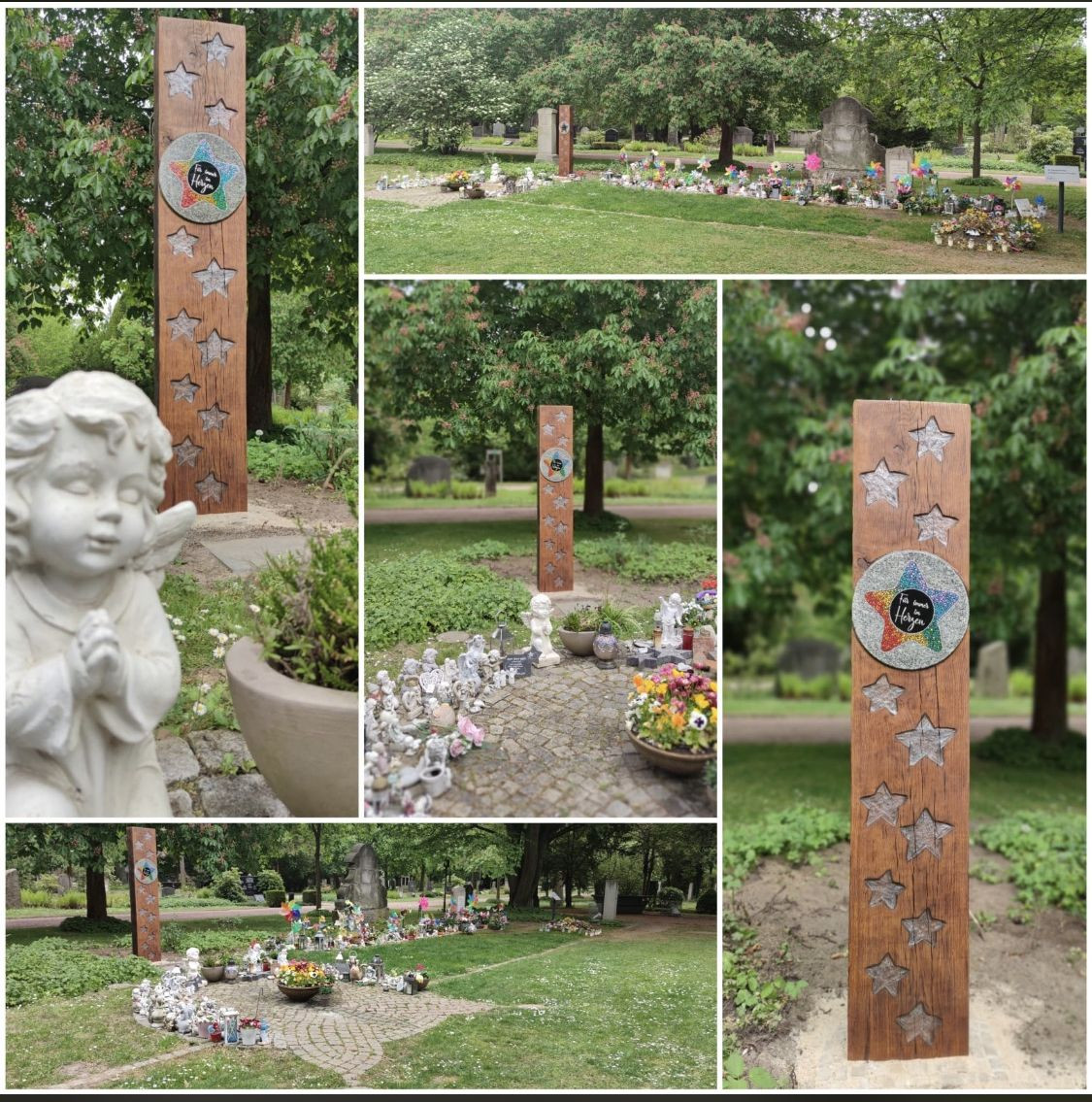 Das Grabfeld der Schmetterlingskinder auf dem Westfriedhof lädt zum Gedenken, Verweilen und Beten ein. Es ist ganzjährig zugänglich und auf dem Lageplan des Friedhofes gekennzeichnet.